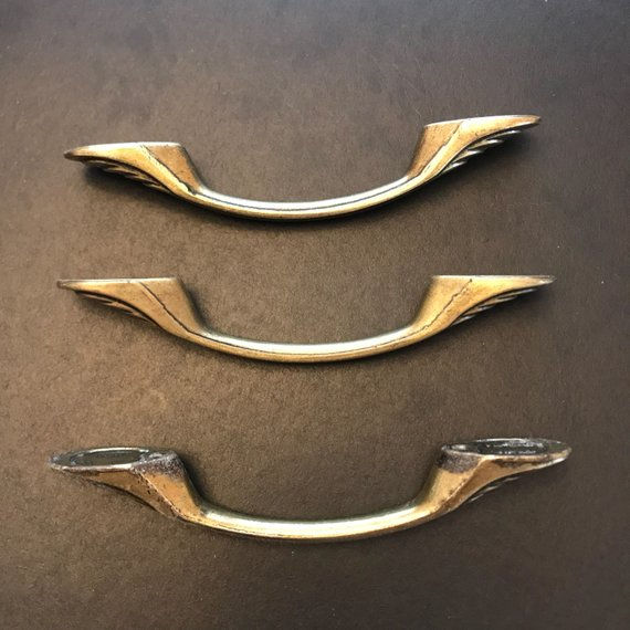 2 - Vintage Drawer Pull Handle - Bronze - Art Deco Spoon, Craftsman, Minimalist