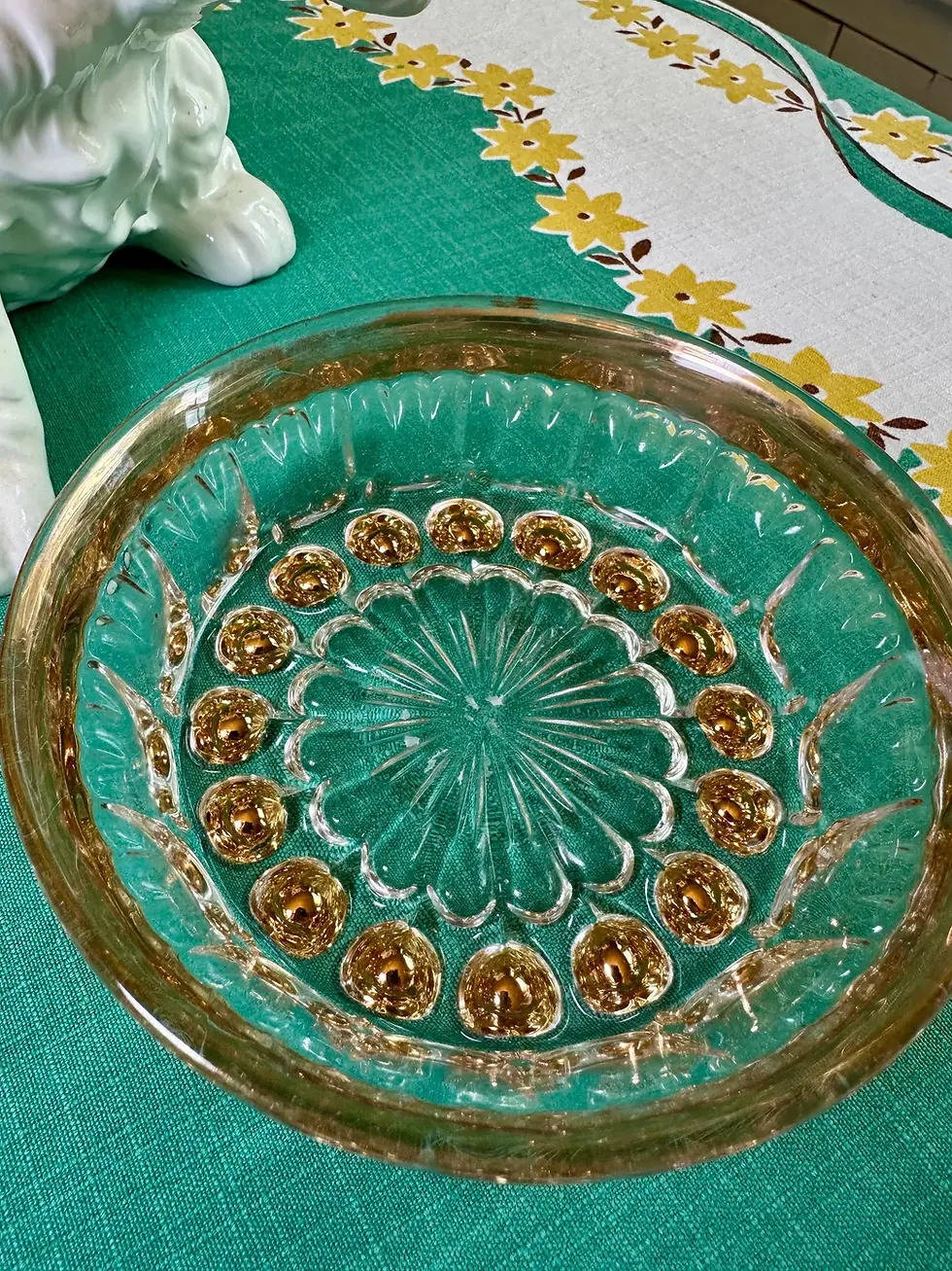 Vintage Pink Glass Bowl, Candy Dish, Gold Accents (HG-A090)