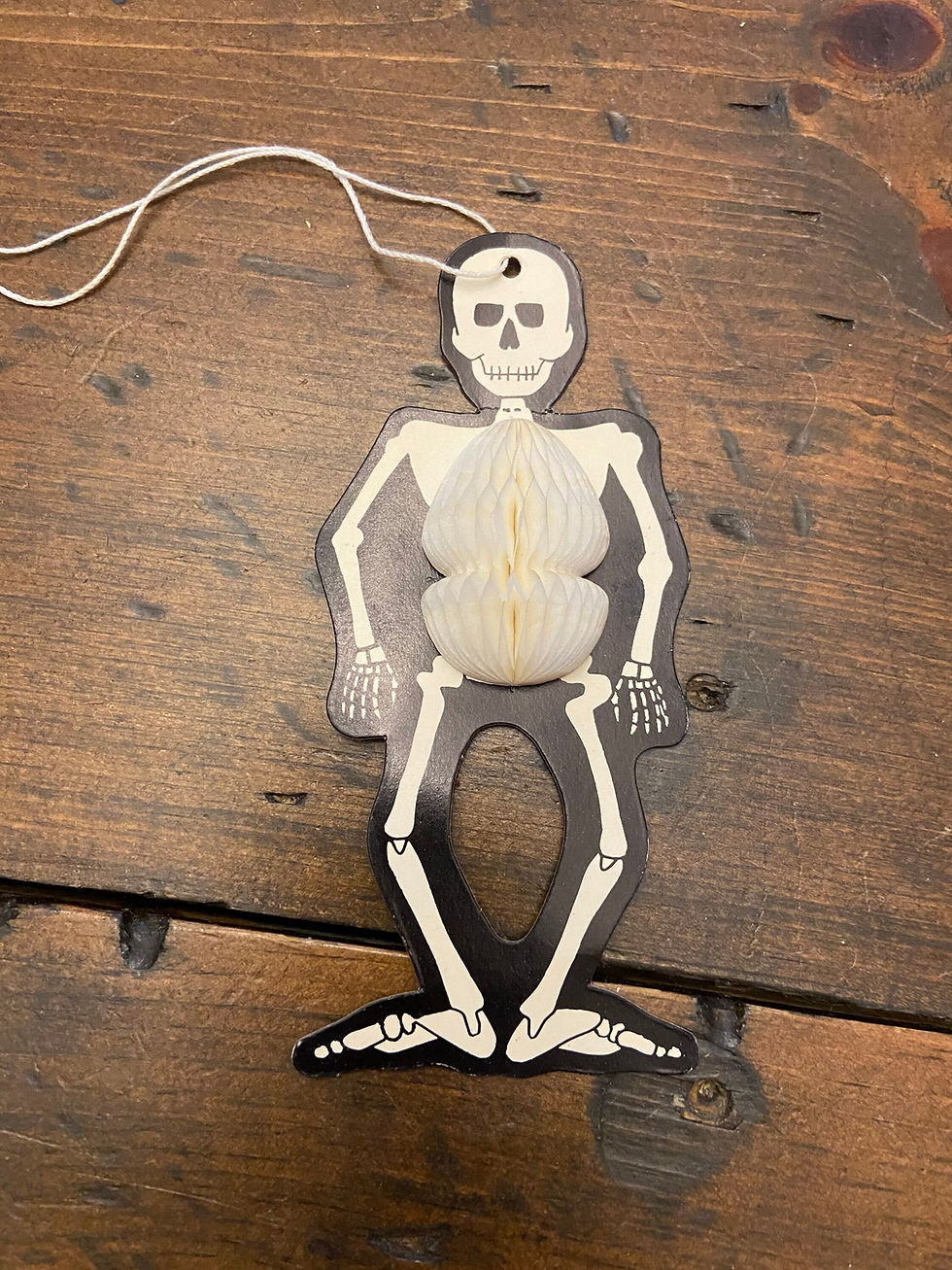 Vintage Halloween Paper Skeleton, Honeycomb Ornament, AMSCAN, Spooky Christmas