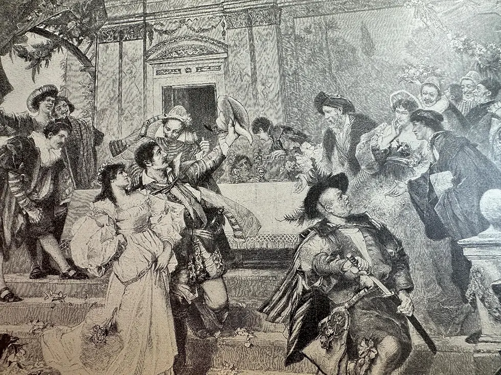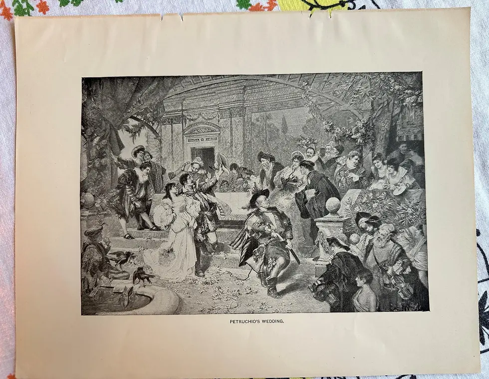 Antique Print, Taming of the Shrew, Shakespeare, 1892 Romance Fiction Art